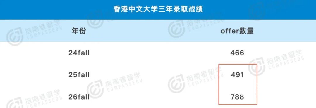 从指南者后台数据也能够非常惊喜地看出,虽说26fall的申请季还没结束,港中文的offer总数已经比25fall全季拿到的还多了将近一倍。
