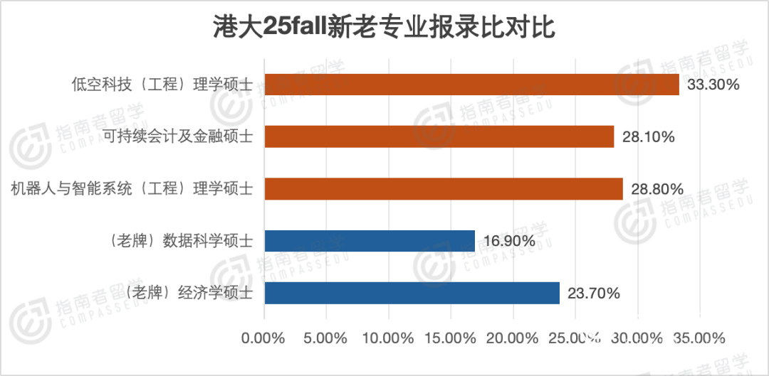 我们再细致一点,直接拿港大25fall几个新开专业和老牌热门专业来个“新旧赛道”对比。