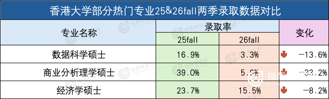 对比之下,港大的“三巨头”(经济、DS、BA)26fall成功率全线飘红,比25fall更加难申请;