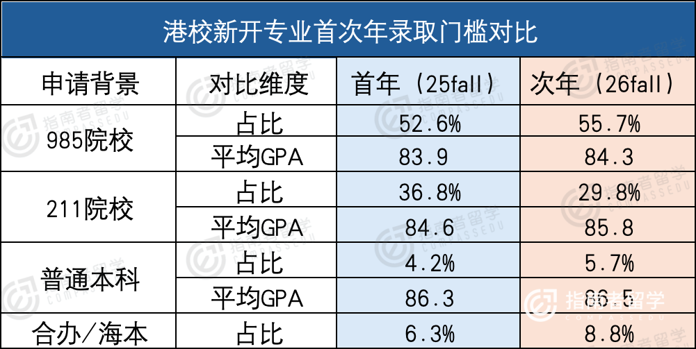 很多人以为新专业第二年大家都会反应过来,竞争会爆表。但数据表明,港校几个新专业的成功率依然维持在惊人的高位。