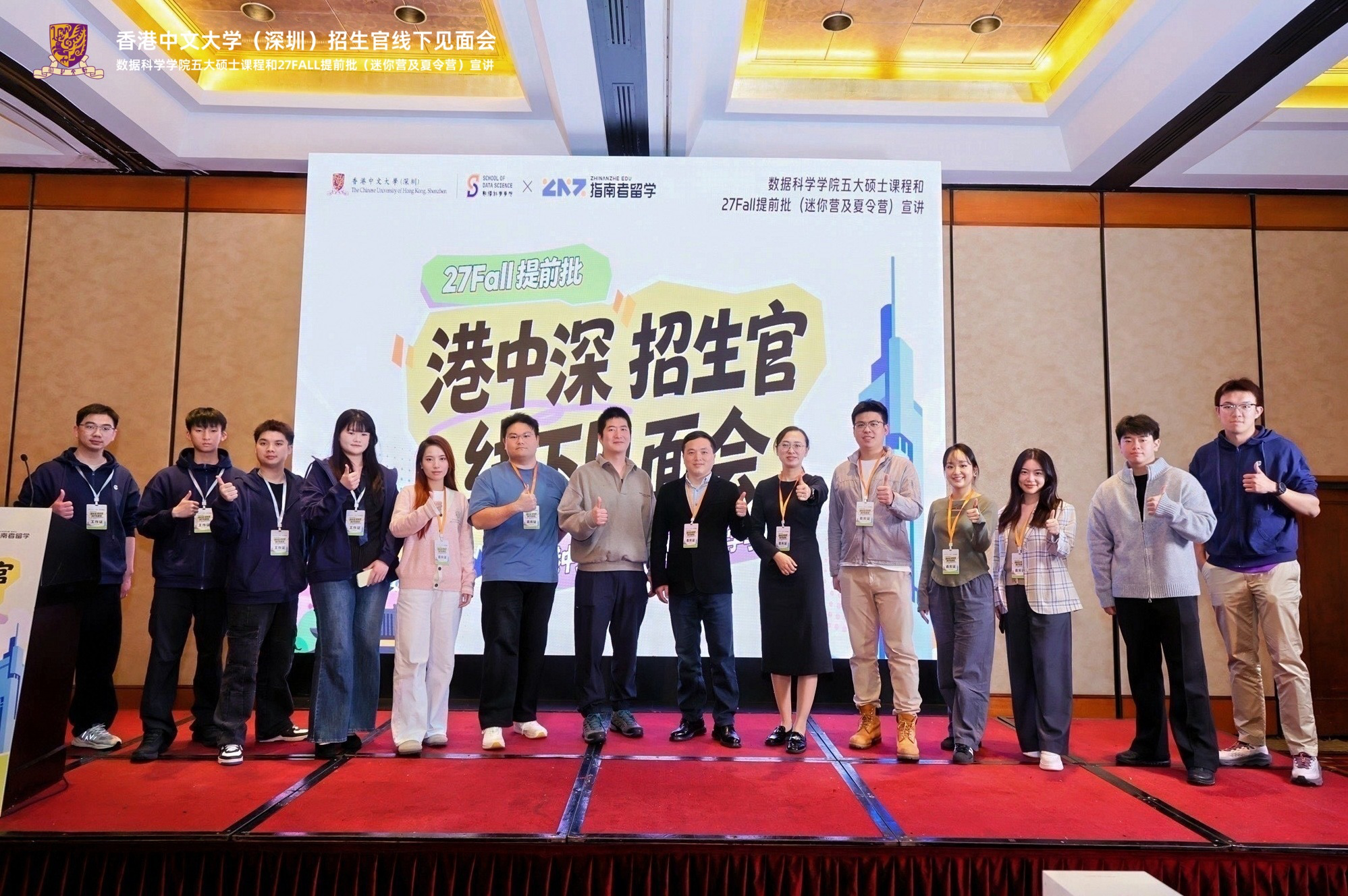 上周末,由香港中文大学(深圳)数据科学学院主办,指南者留学协办的系列招生宣讲会在南京举办。此次系列宣讲,招生官向各位到场的观众详细介绍了数据科学学院的五大硕士项目,同时还对备受关的27FALL提前批招生进行了政策以及时间线的解读。