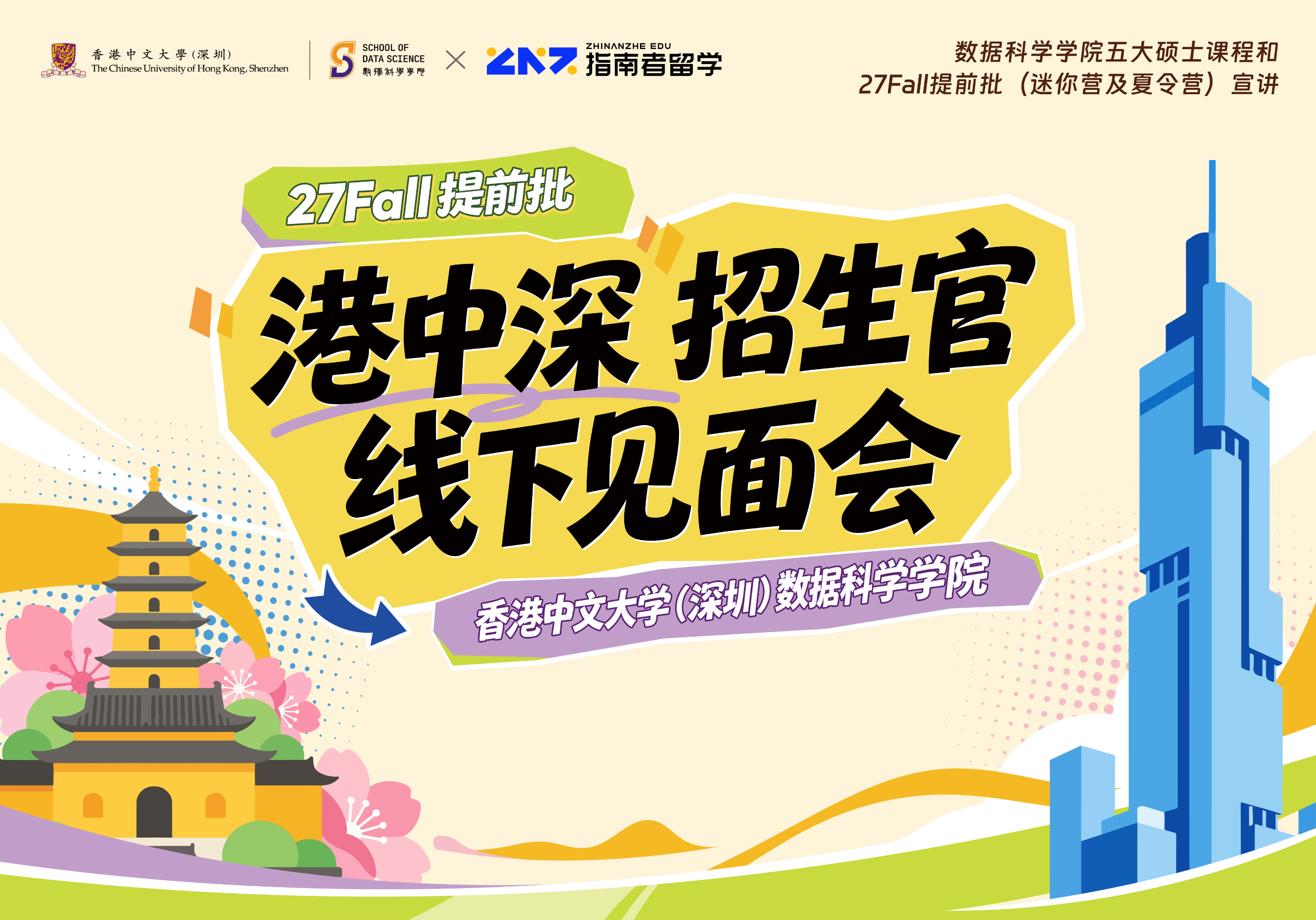 目前27Fall的提前批招生活动已经开启,系列招生宣讲活动正在筹备中。大家可以持续关注指南者留学相关账号以及香港中文大学(深圳)的官方公众号,获取最新资讯。