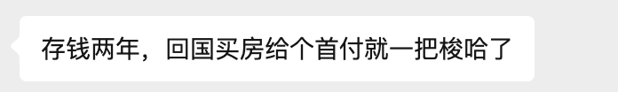 这是我的一个文科专业的老学员,港中文硕士毕业,外派到国外工作,计划攒2年工资,回家把房子首付给付了。