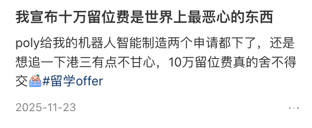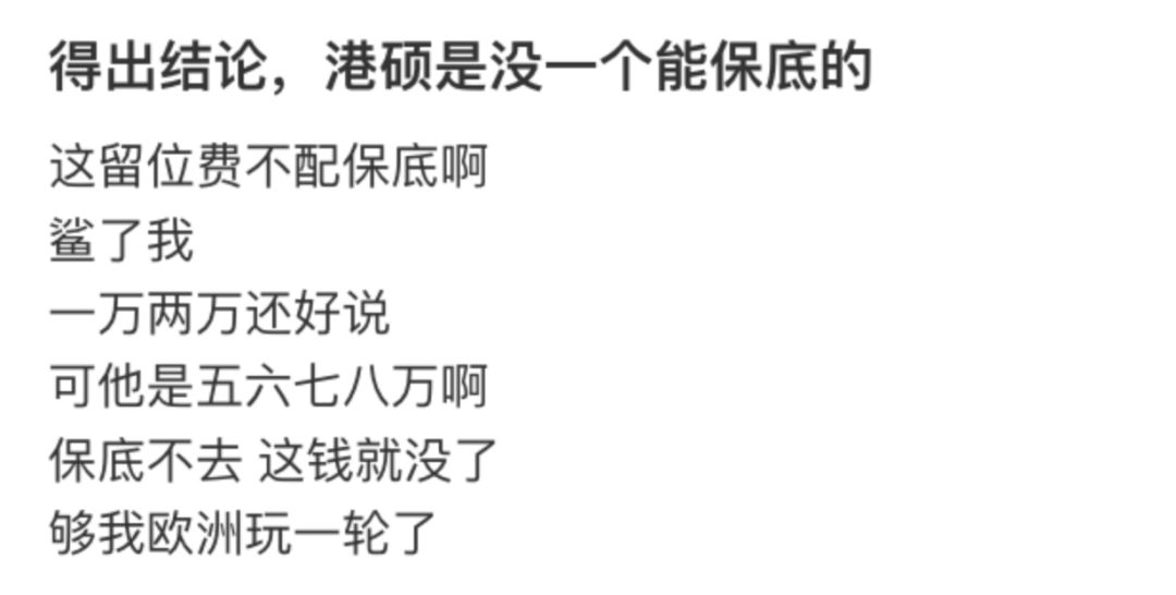 这种金钱与梦想的博弈,让港硕申请再也没有了“绝对保底”的说法。所谓的“保底”,可能保住了学位,却“绑死”了你的选择自由。
