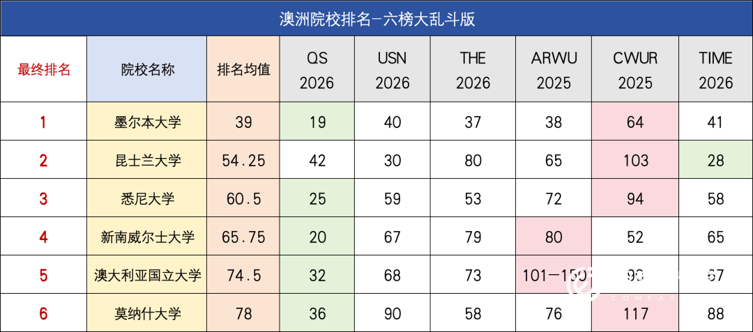 UNSW在QS排第20,但在均值榜回落到了65.75左右。悉尼大学也掉到了60.5左右。