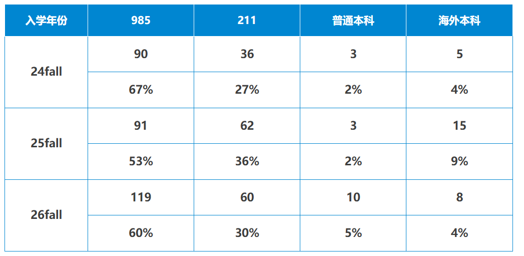 录取本科院校分布