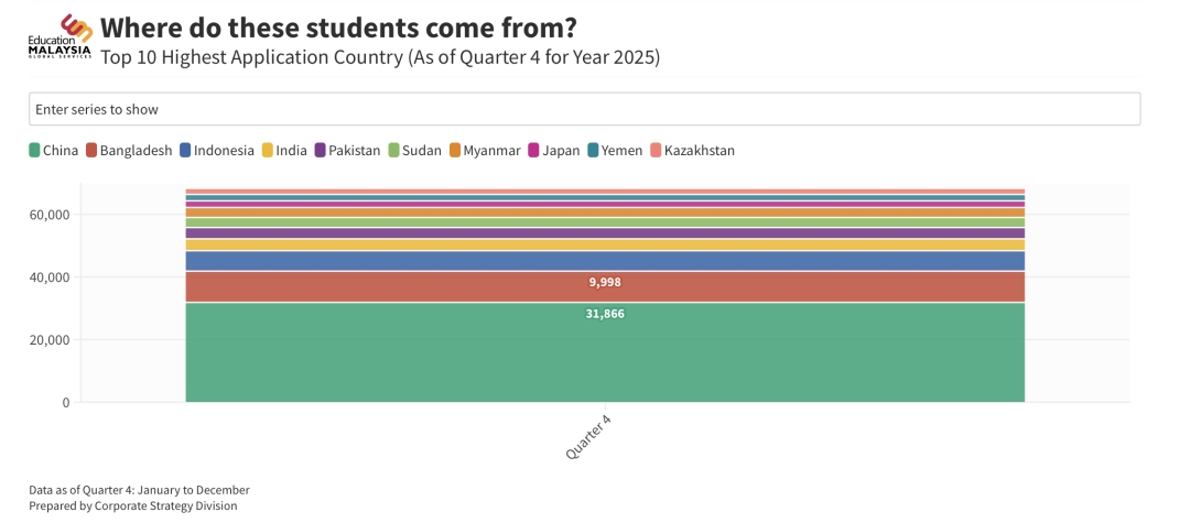 根据马来西亚全球教育服务中心(EMGS)发布的《2025年Q4国际教育趋势全景分析报告》,2025年大马的国际生申请总量直接突破了9.5万份,简直是开启了“暴走模式”。
