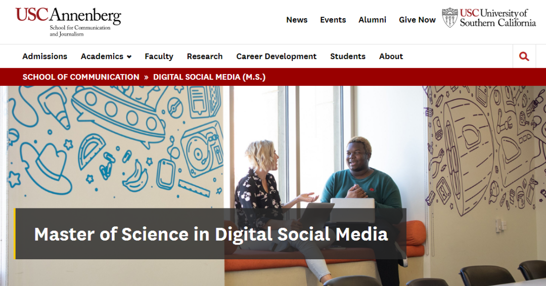 南加州大学USC 开设的数字社交媒体硕士DSM旨在为学生提供在数字化社交媒体领域工作所需的实践技能和专业知识,比如在数字时代,利用社交媒体进行营销和利用数字媒体策略吸引受众。