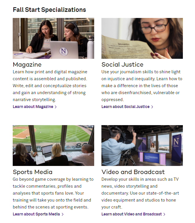 西北大学开设Master of Science in Journalism新闻硕士为期1年,是stem项目,可以选择参加Global Residency Program,第五个quarter可以在世界各地的newsroom实习。