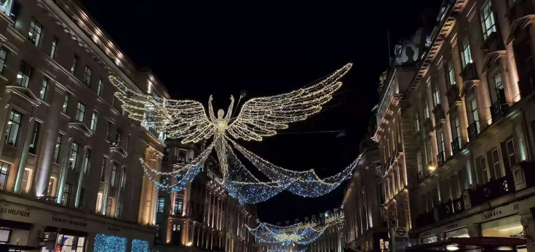 25. 来到伦敦千万不能错过一年一度的点灯仪式,圣诞期间摄政街和牛津街会亮起漂亮的小天使灯。大家会一起在点灯仪式上倒数,在平日繁忙的街道看耀眼的烟花~