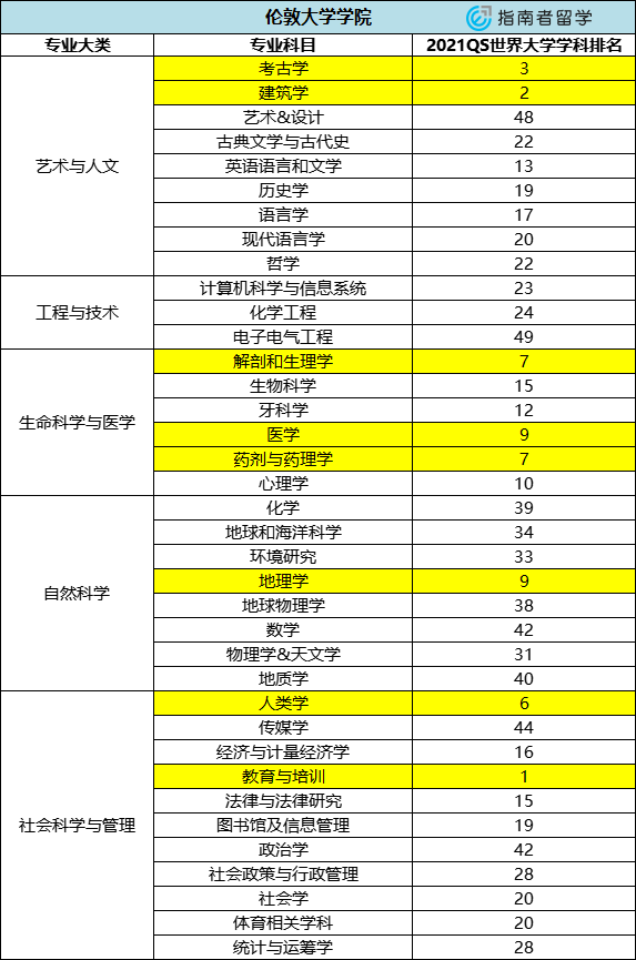 29. 在2021QS世界大学学科排名中,UCL共有37个专业名列全球top50,占到所有专业的70%以上。其中,考古学、建筑学、解剖和生理学、医学、药剂与药理学、地理学、人类学、教育与培训等专业更是高居全球前10。