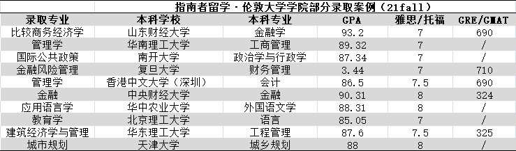 39. UCL录取的内地学生以985/211和海本背景为主,不过学校并没有对国内院校设置严格的名单,因此一直以来也有不少双非的同学通过漂亮的GPA和其他突出软背景成功圆梦UCL。根据21fall的录取数据来看,985/211背景收到录取的同学GPA基本在85+,双非的同学则要90+。