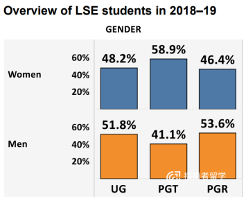 24. 2019/20学年,LSE每个本科生名额收到12.4份申请,每个授课型研究生名额收到5.4份申请;全日制学生10782名(包括5331名本科生,5030名授课型研究生和421名研究型研究生)。从LSE官网给出的数据来看,中国学生的比例基本持平在14%左右,依然是贡献LSE高昂学费的最大主力军。