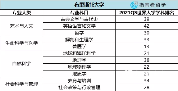 37. 在2021QS世界大学学科排名中,布大共有11个专业位列全球前50,占到专业总数的22%。其中,哲学、兽医学、地球和海洋科学、地球物理学、地质学、社会政策与行政管理均位列全球top30。