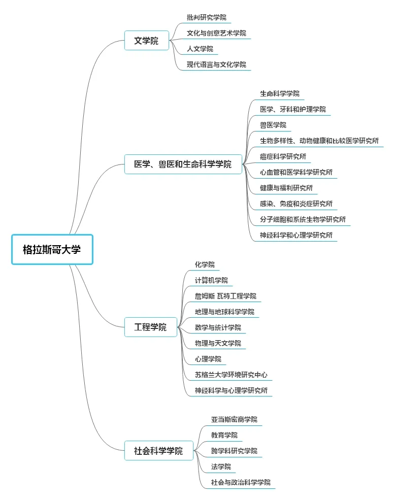 32. 除了亚当·斯密商学院外,格大的法学、医学、工程学等学科也很有实力。格大法学院是英国最大的法律研究中心之一,英国最高法院的第一位女法官就毕业于这里;格大工程学院开设了英国第一个土木工程系和造船系。
