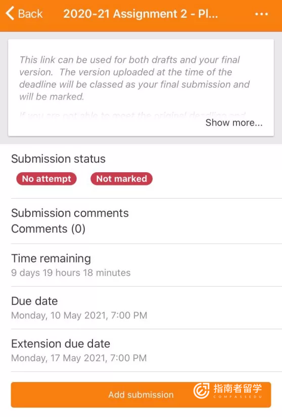 35. 为了拯救重度拖延症患者们,格大贴心地设置了extension form,可以选择5 working-day extension或者10 working-day extension来将DDL延长7天或者10天(含周末)。延期作业成功会修改原定DDL,只要在新DDL前上交作业就不会被处罚。