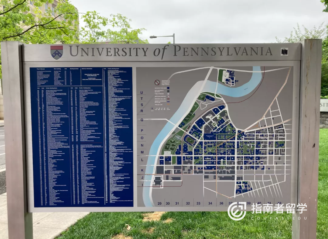 宾大校园位于费城的中心(University City),主校区横向看从29街一直延续到42街,纵向则贯穿market street,chestnut street和walnut street。