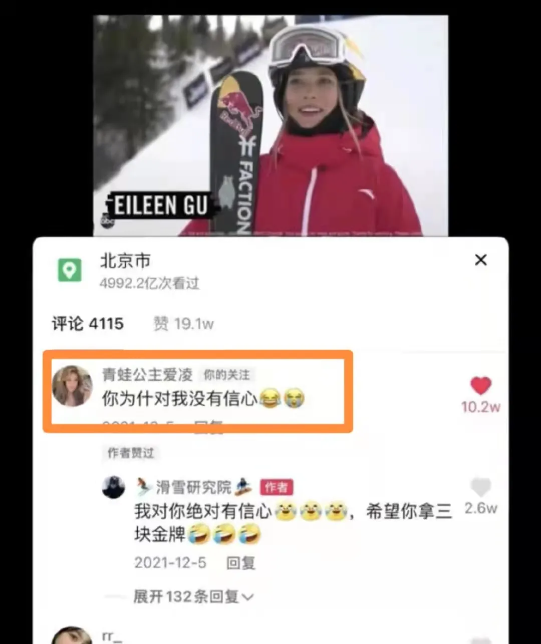谷爱凌在最后一跳完成空中转体1620,总分188.25,逆转夺冠!实现中国女子雪上项目历史性突破!