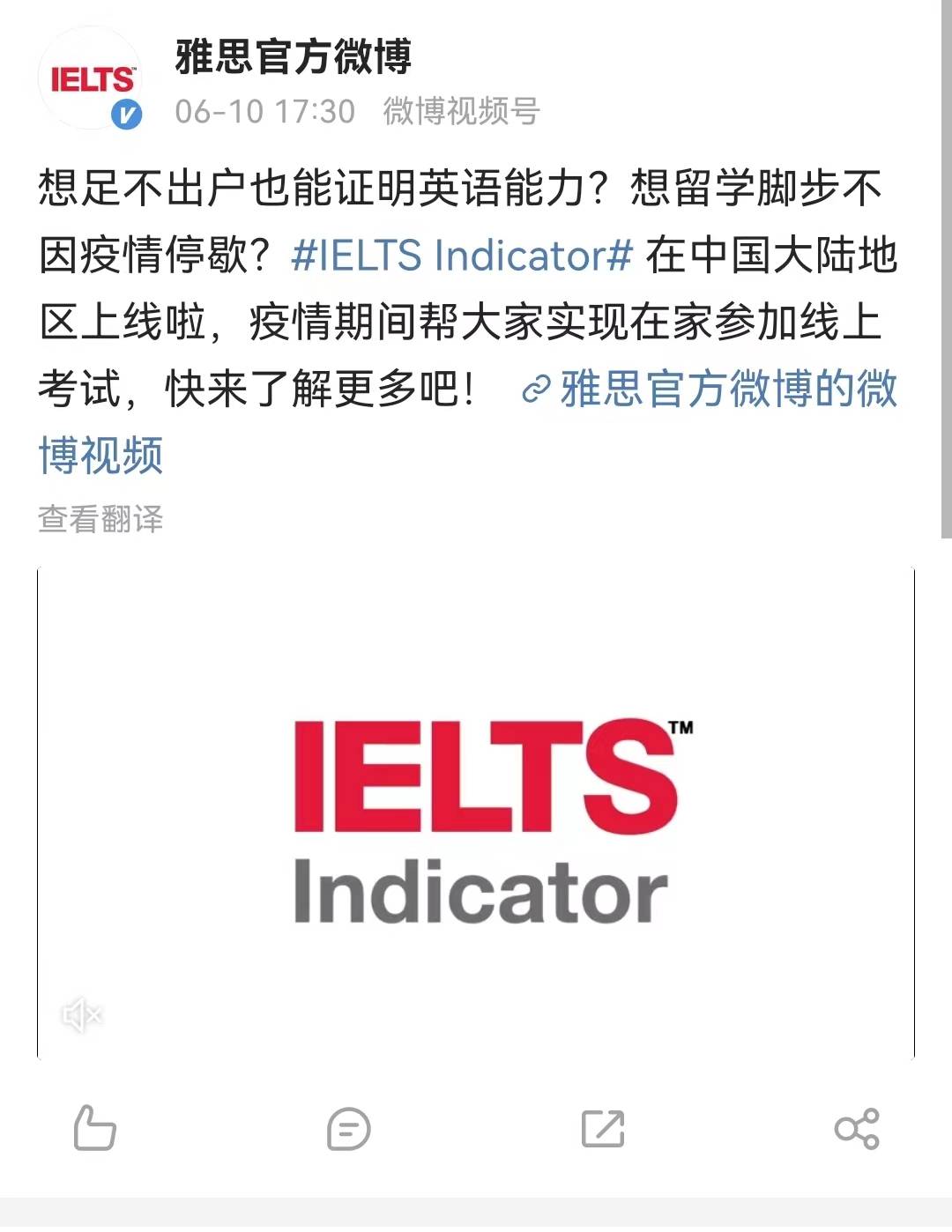 终于!雅思官方听见了我们的呼唤!在这个月10号发布微博宣布:雅思家考IELTS Indicator在中国大陆地区正式上线。
