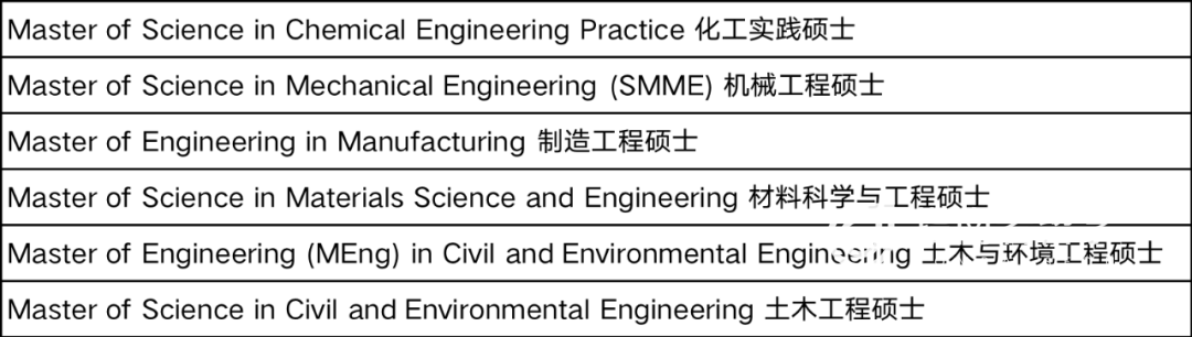 作为工科强校,MIT工学院开设的硕士项目还是很多的,这里直接给大家列一下: