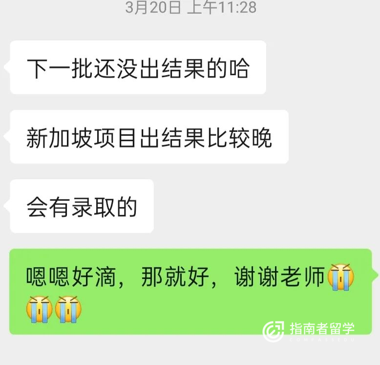 我做出选择的理由其实很微妙。我至今还记得,我当时在电话里对着指南者留学的老师说的是,“老师,我GPA3.44,有一段实习,一段台湾交换经历,想去新加坡,但还没考过雅思,我最担心的就是,现在申请真的来得及吗?我真的担心时间不够。”