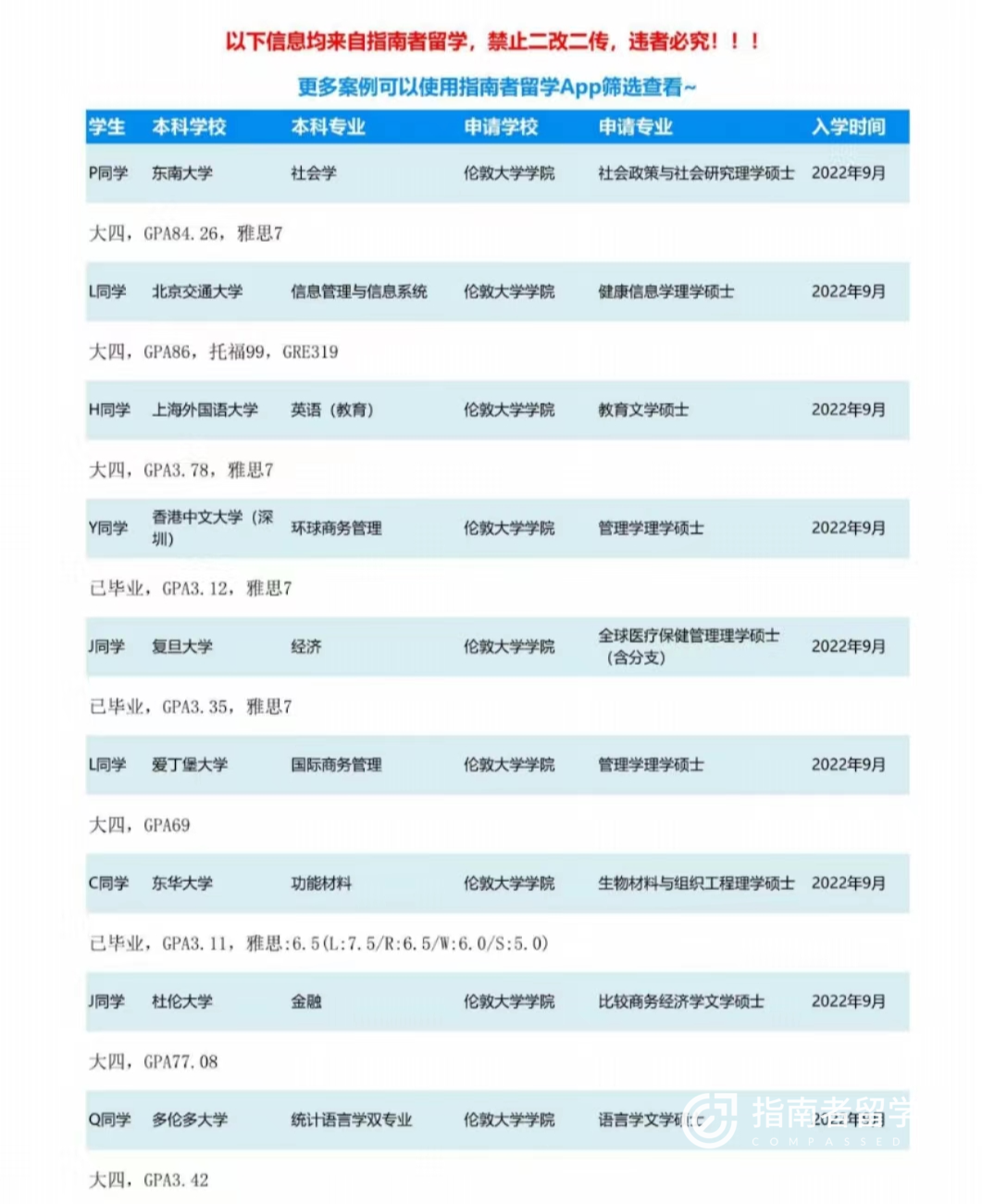 以上展示节选自指南者留学汇总的英国G5院校成功录取案例,有需要的同学可以添加文末的小助手免费领取完整版英国G5录取案例汇总文件,查询自己的目标院校录取情况。