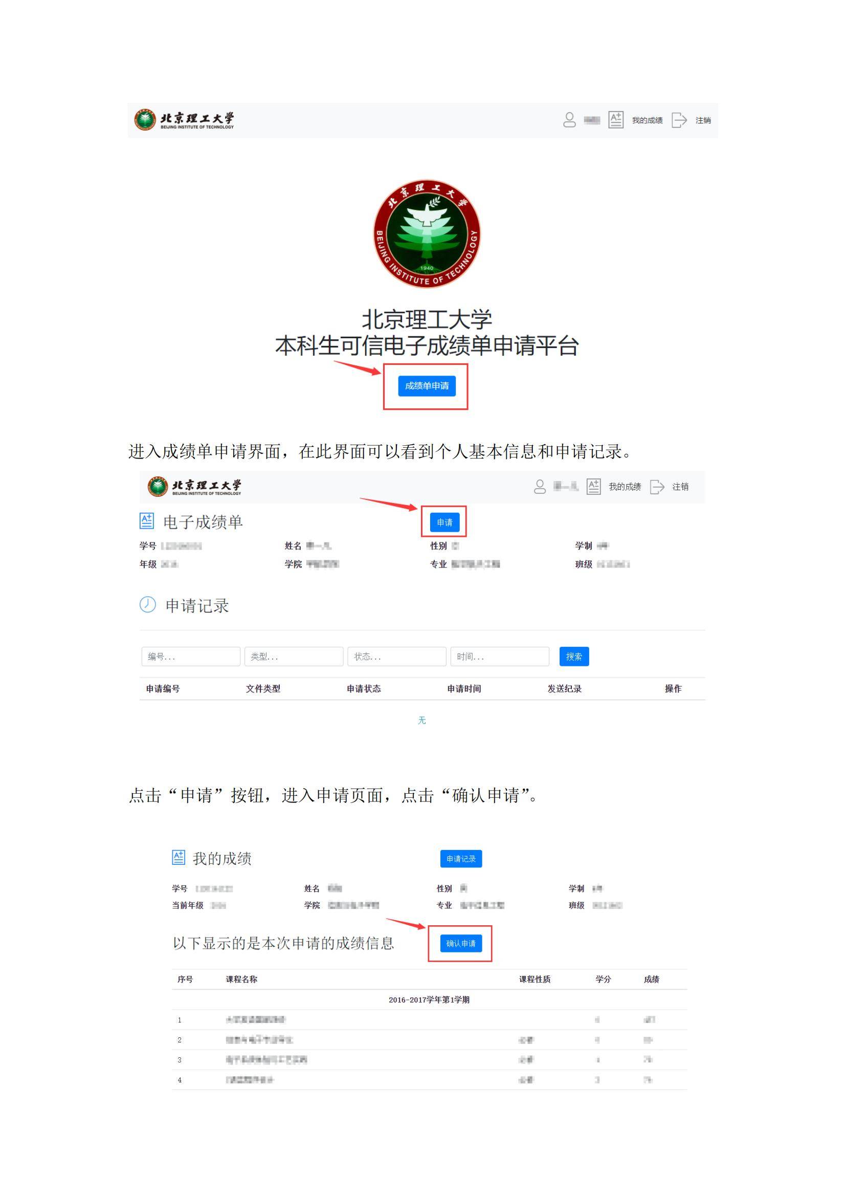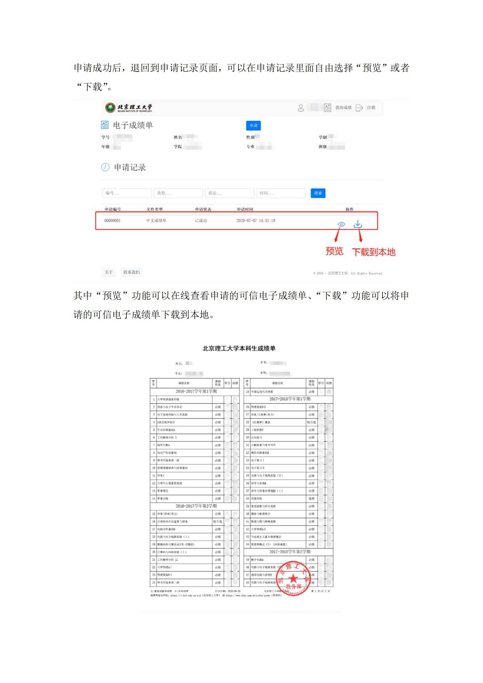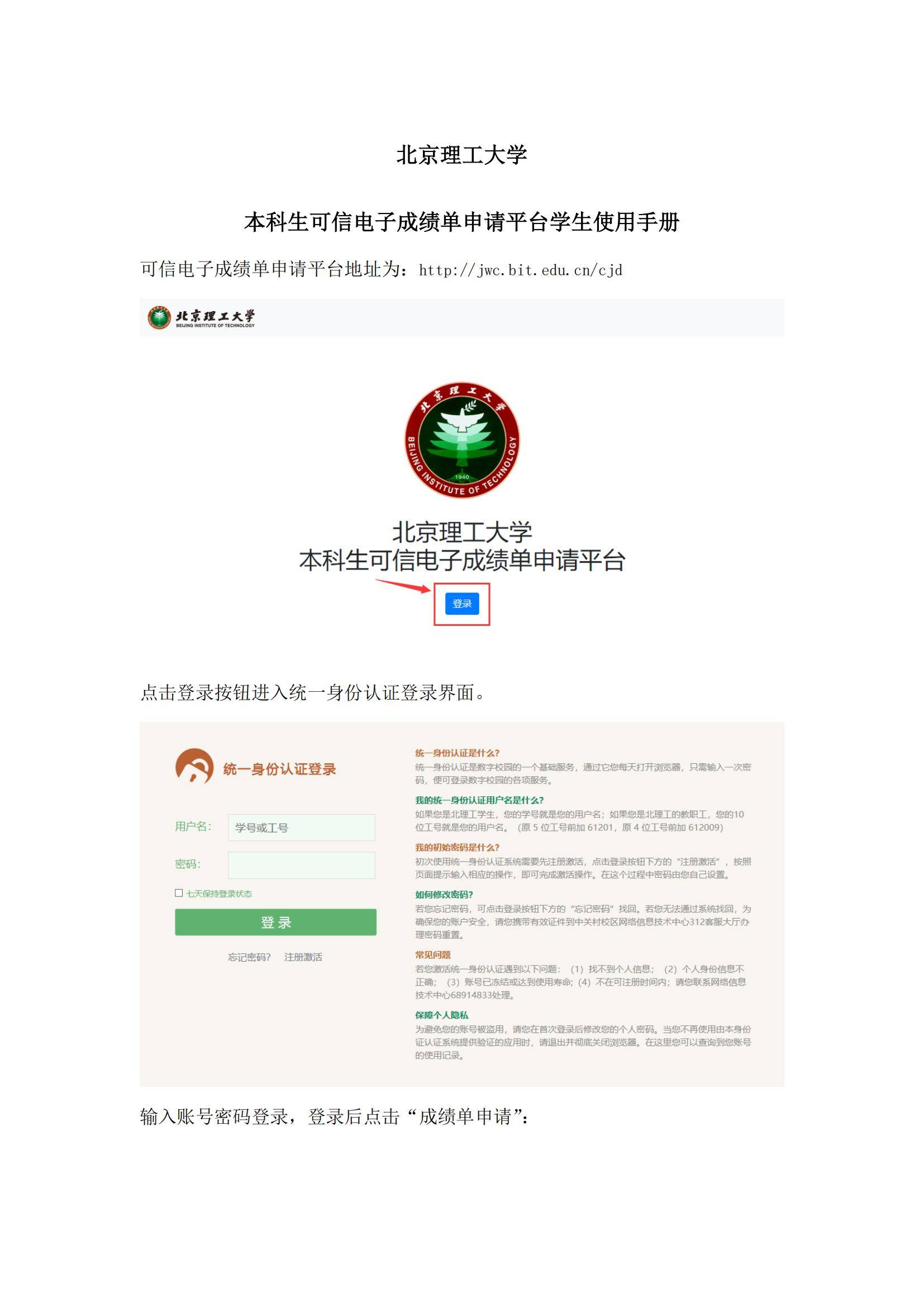 北京理工大学本科生可信电子成绩单申请平台学生使用手册
