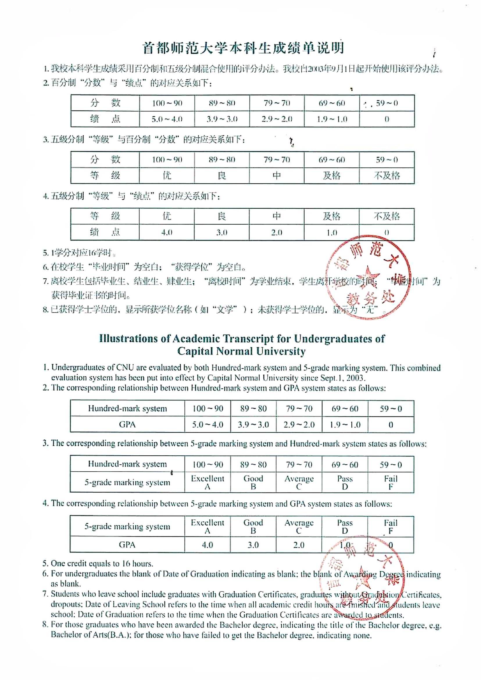 首都师范大学学分绩点换算标准