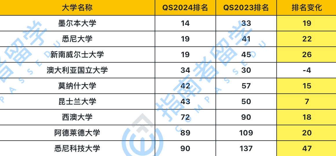 澳大利亚成为本次排名方法论变动的最大受益者之一,9所院校进入前100(以后是不是该叫“澳九大”了),6所院校前50,更是有3所院校进入了世界前20!