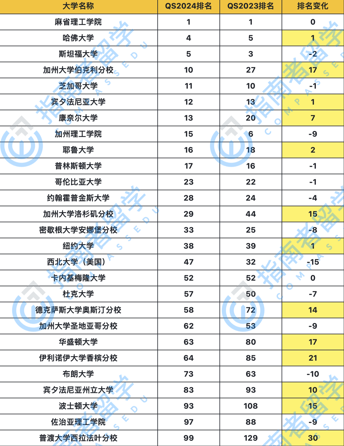 麻省理工学院连续十二年创纪录位列世界第一。本次最为耀眼的,当属加州大学伯克利分校,从Top 30院校直接一跃成为Top 10。同属加州系的UCLA也从44名上升到29名,荣登Top 30。康奈尔大学再次上升,从20名上升到13名(康村:重铸藤校荣光,吾辈义不容辞!)波士顿大学、普渡大学成为新晋前100院校,而威斯康星大学麦迪逊、莱斯大学则在本次排名跌出了前100。