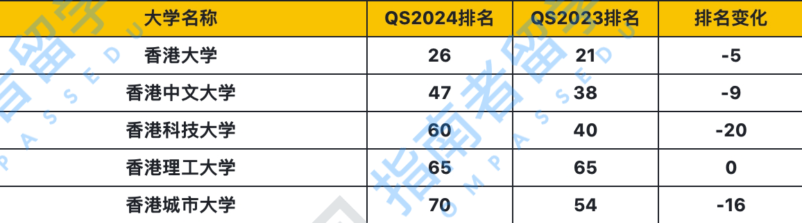 受本次方法论变化的冲击,中国香港地区的院校排名整体下跌。香港大学由第21名降至第26名,香港中文大学由第38名降至47名,香港科技大学降至第60名,香港城市大学降至70名,“港五所”仅香港理工大学保持排名位次不变。