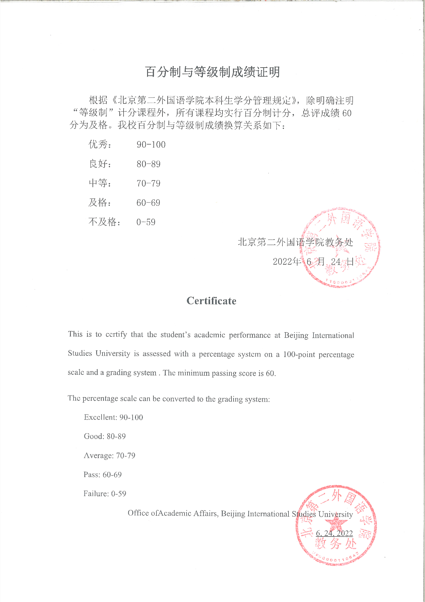 GPA是评价学生学习成果的重要指标,在留学申请中,学生光知道GPA是不够的,还需要知道自己的GPA对应的百分制成绩是多少,对应的等级是什么,以应对不同院校的申请要求,这就需要通过学分绩点换算标准进行换算。且对于大部分海外院校来说,学分绩点换算标准是学生必须提交的留学申请文件。因此学生需要清楚知道本校的学分绩点换算方式,以更准确的计算自己的成绩。以下是北京第二外国语学院学分绩点换算标准的具体介绍,给大家提供一些有用的参考。
