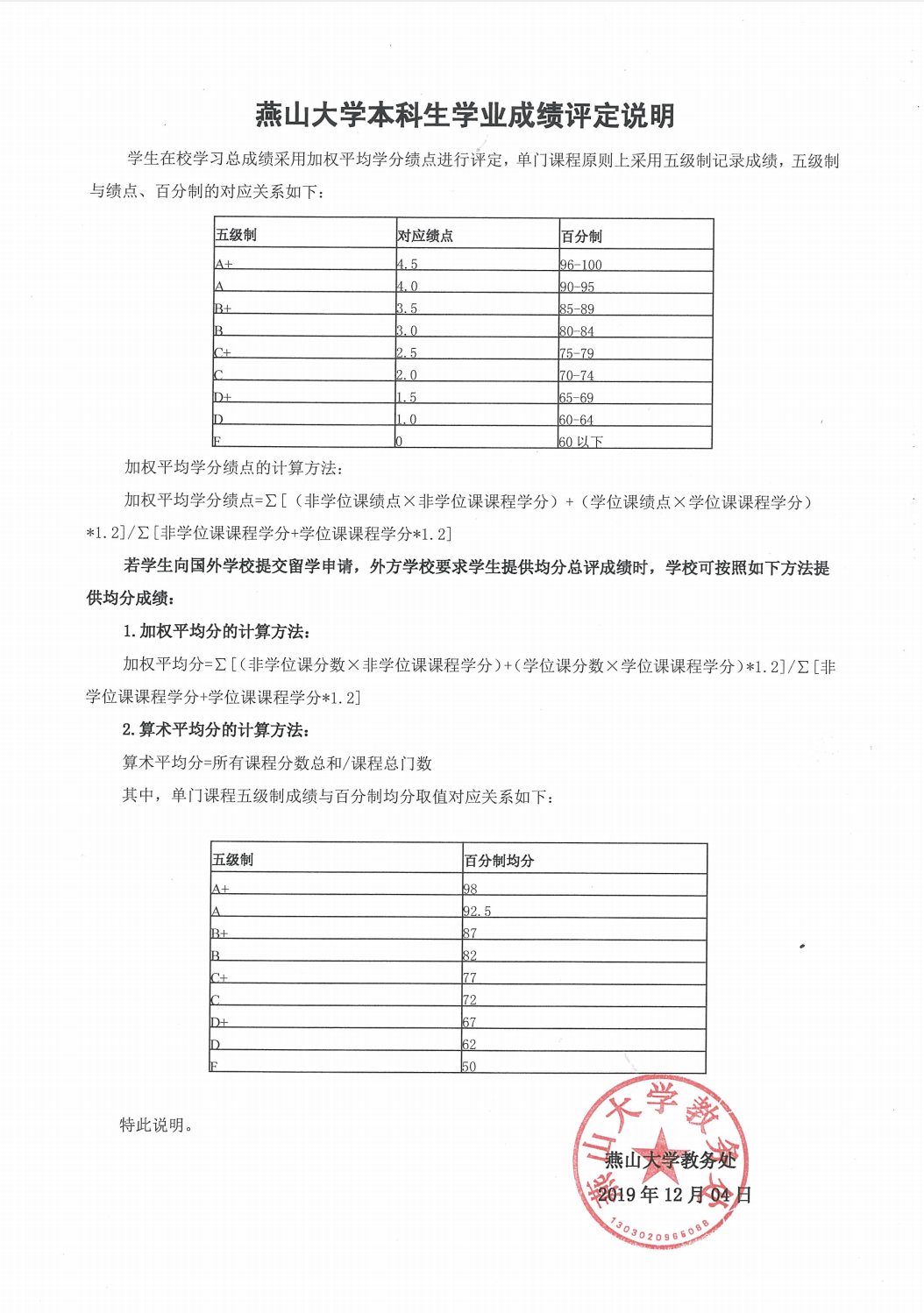 需要注意的是,燕山大学的学分绩点换算标准不体现在成绩单上,学生需另外开具百分制均分及学分绩点换算标准文件。