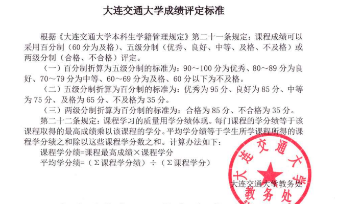 需要注意的是,大连交通大学院的学分绩点换算标准不体现在成绩单上,学生需另外开具学分绩点换算标准文件。