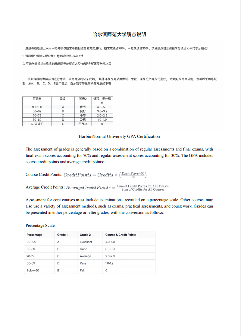 需要注意的是,哈尔滨师范大学的学分绩点换算标准不体现在成绩单上,学生需另外开具百分制均分及学分绩点换算标准文件。