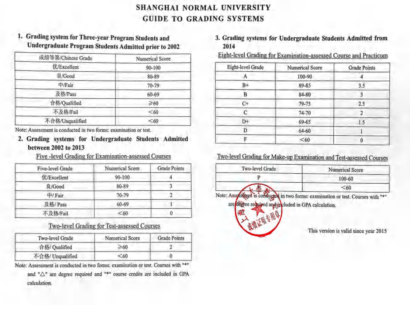 GPA是评价学生学习成果的重要指标,在留学申请中,学生光知道GPA是不够的,还需要知道自己的GPA对应的百分制成绩是多少,对应的等级是什么,以应对不同院校的申请要求,这就需要通过学分绩点换算标准进行换算。且对于大部分海外院校来说,学分绩点换算标准是学生必须提交的留学申请文件。因此学生需要清楚知道本校的学分绩点换算方式,以更准确的计算自己的成绩。以下是上海师范大学学分绩点换算标准的具体介绍,给大家提供一些有用的参考。