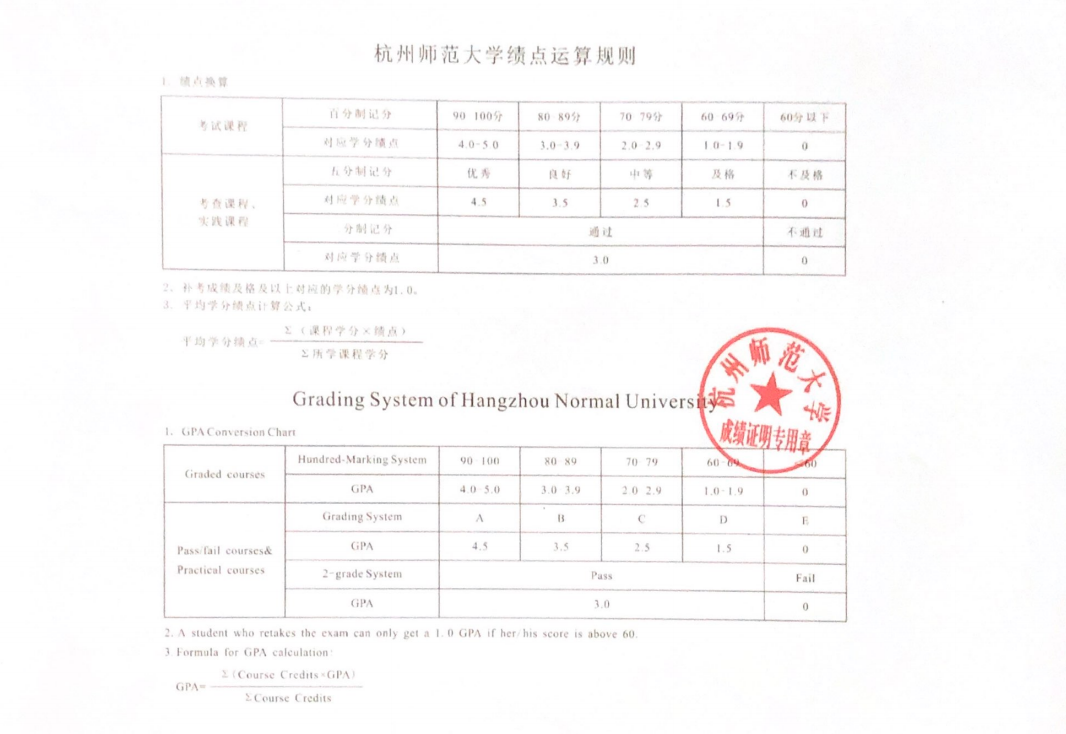 需要注意的是,杭州师范大学的学分绩点换算标准不体现在成绩单上,学生需另外开具百分制均分及学分绩点换算标准文件。
