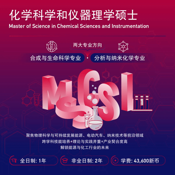 化学正在成为改变世界的重要力量。新加坡南洋理工大学化学科学和仪器理学硕士项目融合物理科学、纳米技术等方向进行跨学科培养,聚焦可持续发展领域,为您的职业生涯注入无限可能!