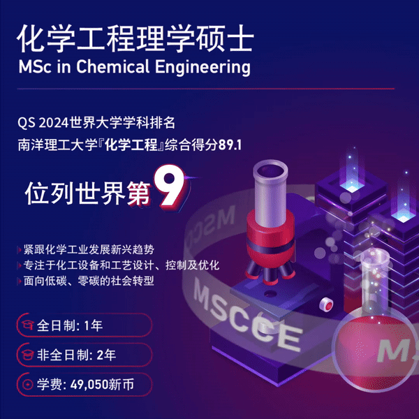 化学工程的创新驱动着世界的可持续发展!新加坡南洋理工大学化学工程理学硕士项目,紧跟化学工业的新兴趋势,为您提供独特的学术和职业发展平台,帮助您在低碳、零碳的社会转型中脱颖而出。