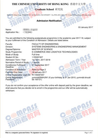 香港中文大学电子商务与物流技术理学硕士研究生offer一枚