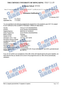 香港中文大学电子工程理学硕士研究生offer一枚