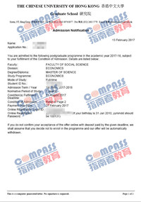 香港中文大学经济学理学硕士研究生offer一枚