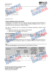 新加坡国立大学统计学理学硕士研究生offer一枚