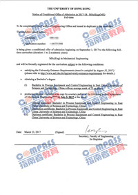 香港大学机械工程(工程)理学硕士研究生offer一枚