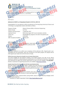 香港科技大学电子工程理学硕士研究生offer一枚