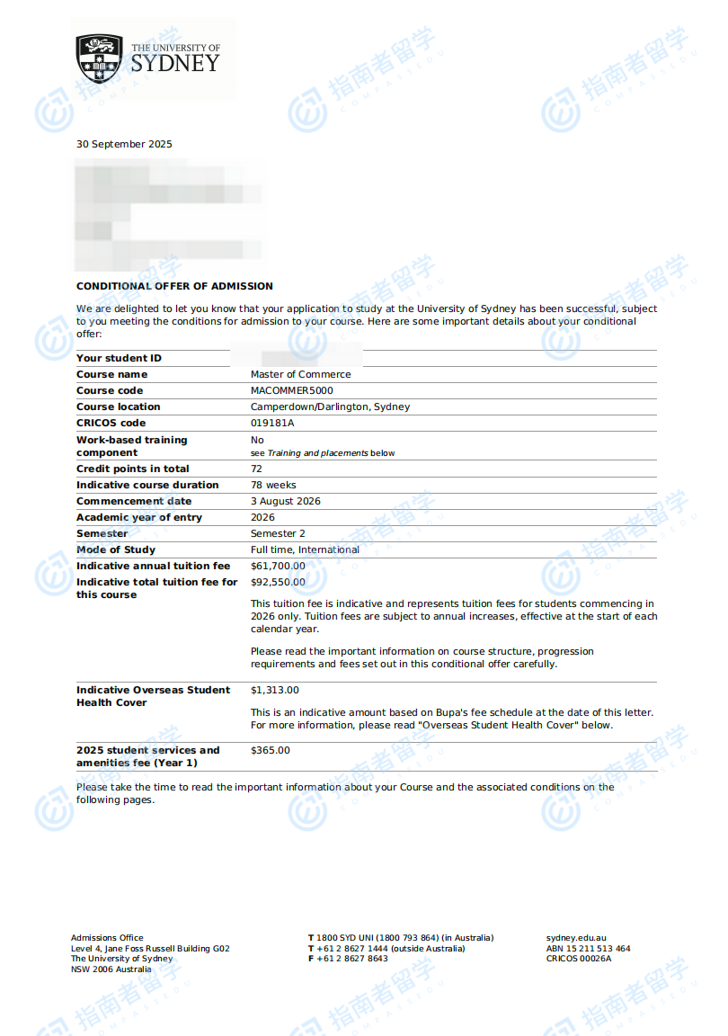 - 具有悉尼大学颁发的商学研究生文凭或研究生证书,平均学分达到65%。