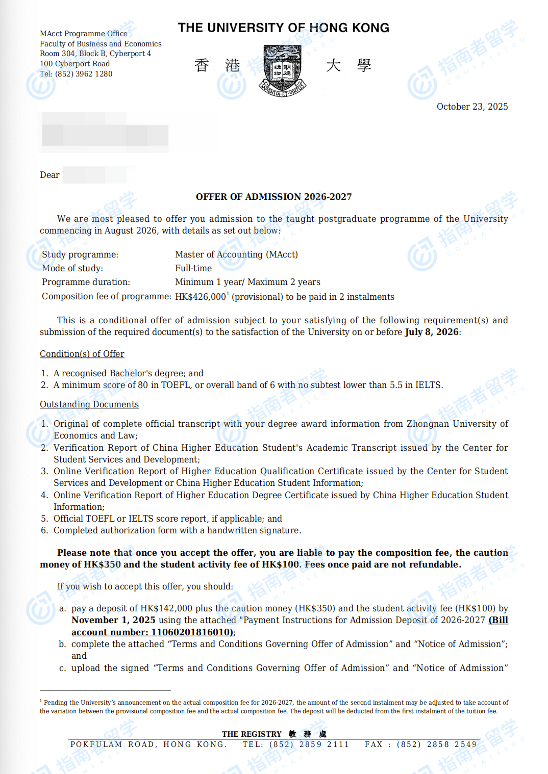 具有学士学位或同等学历,不强制要求提供GMAT/GRE,但具备良好的GMAT/GRE成绩或具备商科学士学位或具备会计相关工作经验的申请者将被优先考虑
