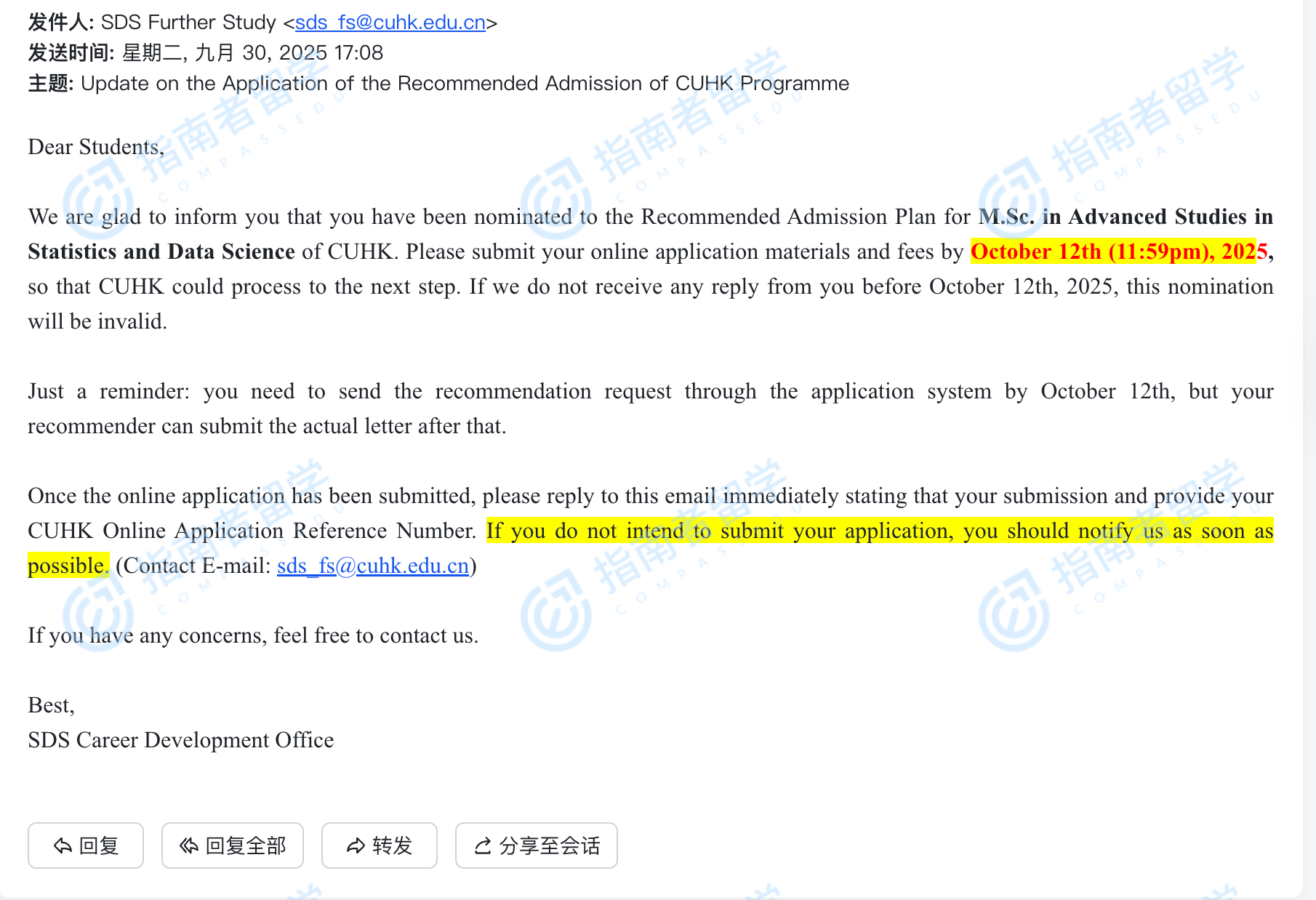 香港中文大学统计与数据科学高级研究理学硕士研究生offer一枚