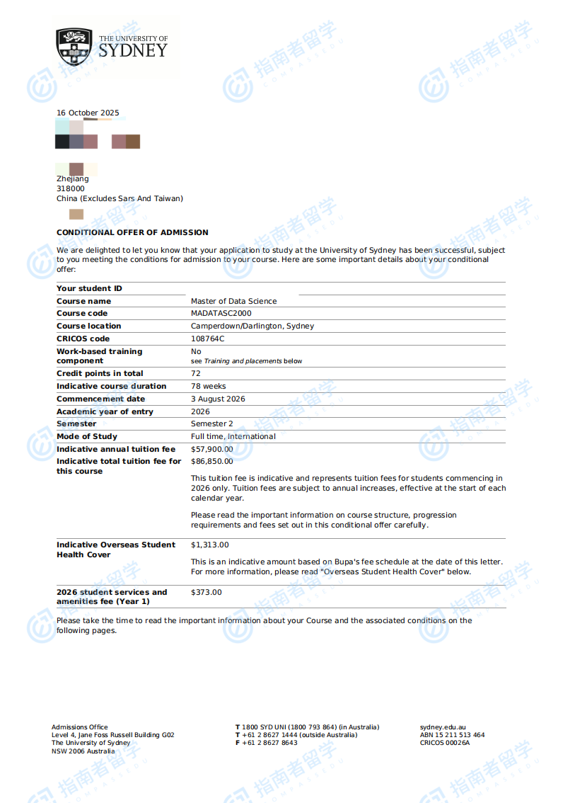 悉尼大学数据科学硕士研究生offer一枚