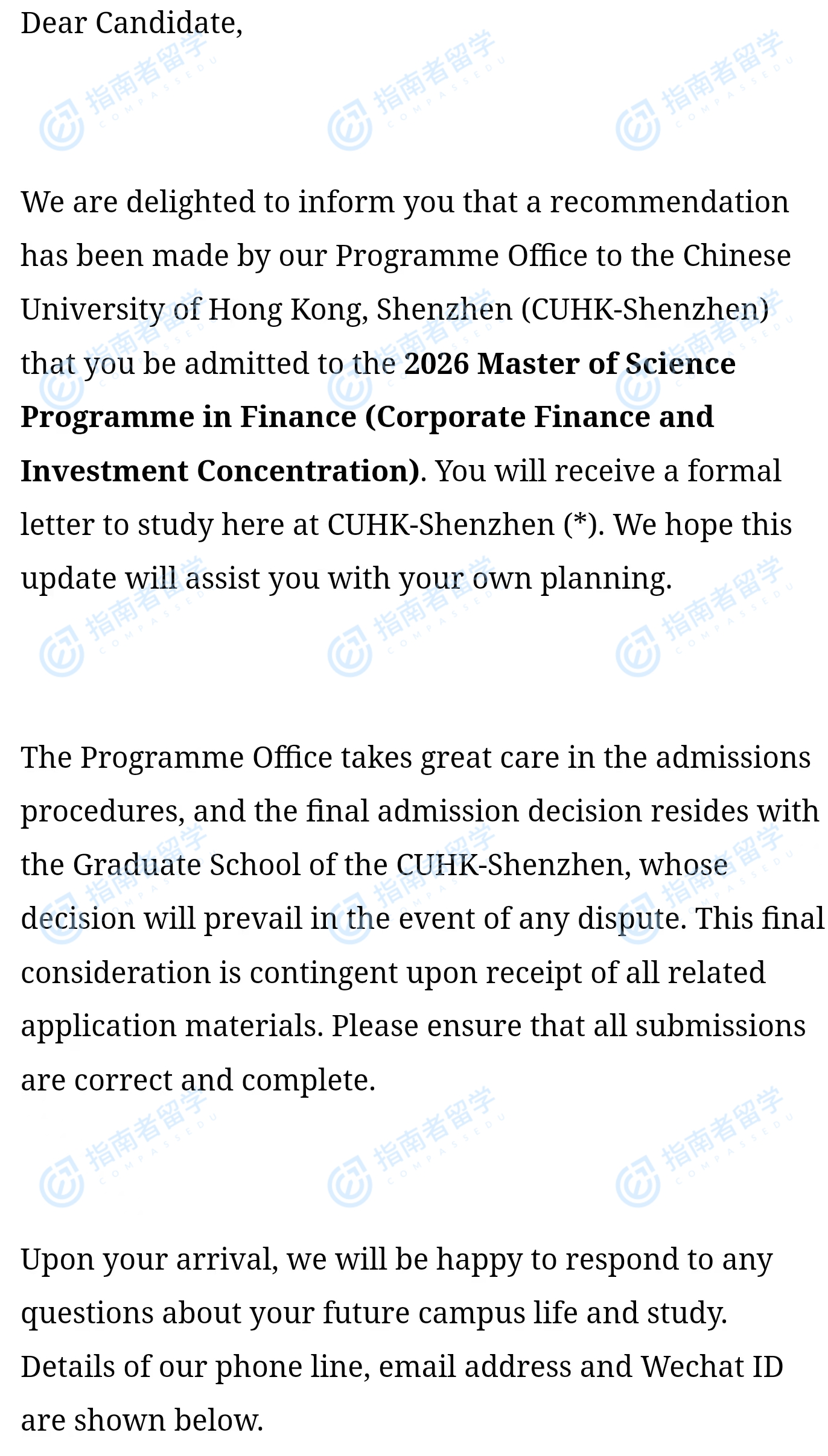 香港中文大学金融学理学硕士(CUHK-Shenzhen)研究生offer一枚